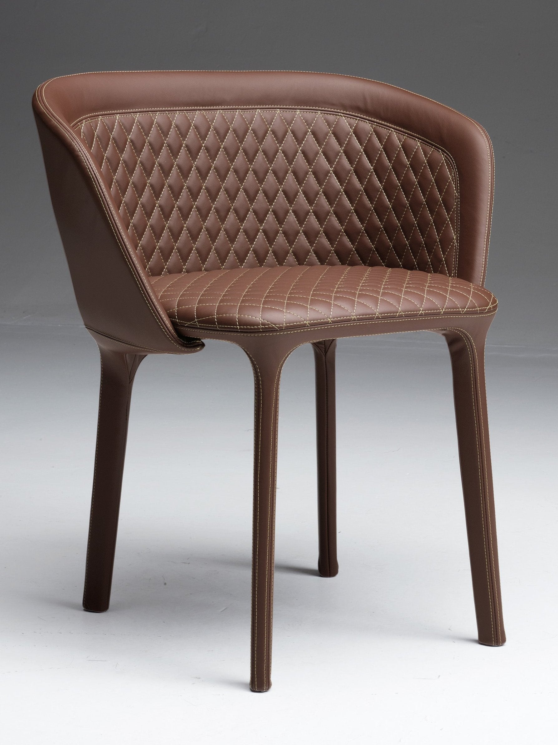 The Lepel Armchair is fully upholstered in either quilted fabric or leather, showcasing meticulous craftsmanship. The visible stitching and the ability to customize the finishes make each piece unique.  The structure is made from fireproof cold polyurethane foam with an inner metal frame, ensuring durability and safety.