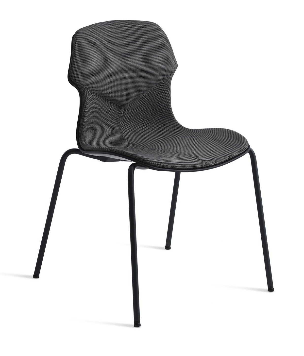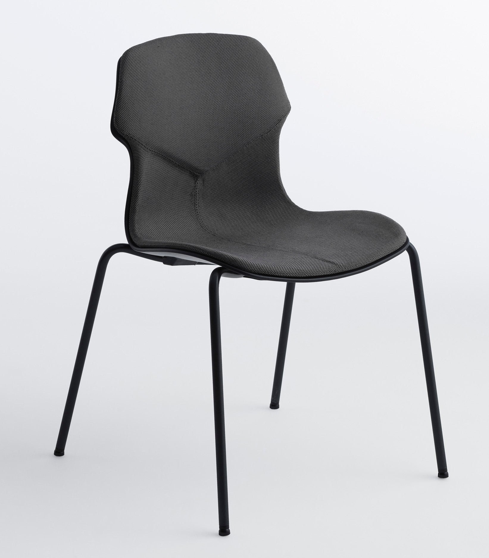 Materials: Chair with painted or chrome metal legs. Polypropylene shell with an upholstered front. Self-leveling feet. The black chair has a matte shell back. The white, gray, and beige chairs have a glossy shell on the back. Stacks a maximum of 6 chairs high.